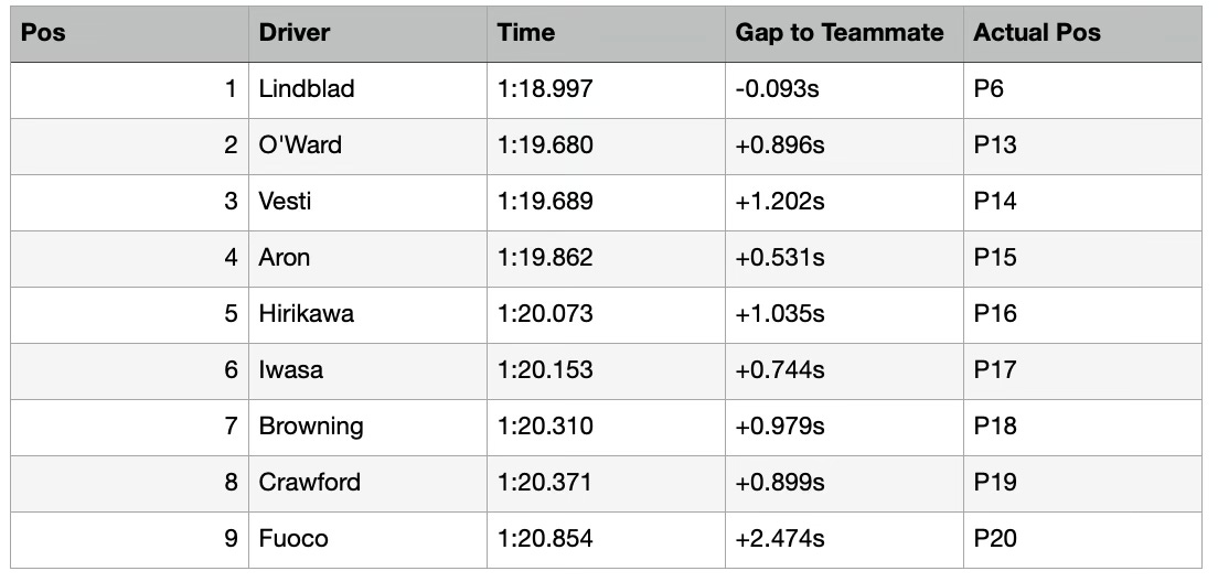 O’Ward was the second quickest ‘rookie’, having finished in P13, although his experience in top-level single-seaters is considerably higher than his FP1 counterparts, coming off the back of challenging for this year’s IndyCar title.